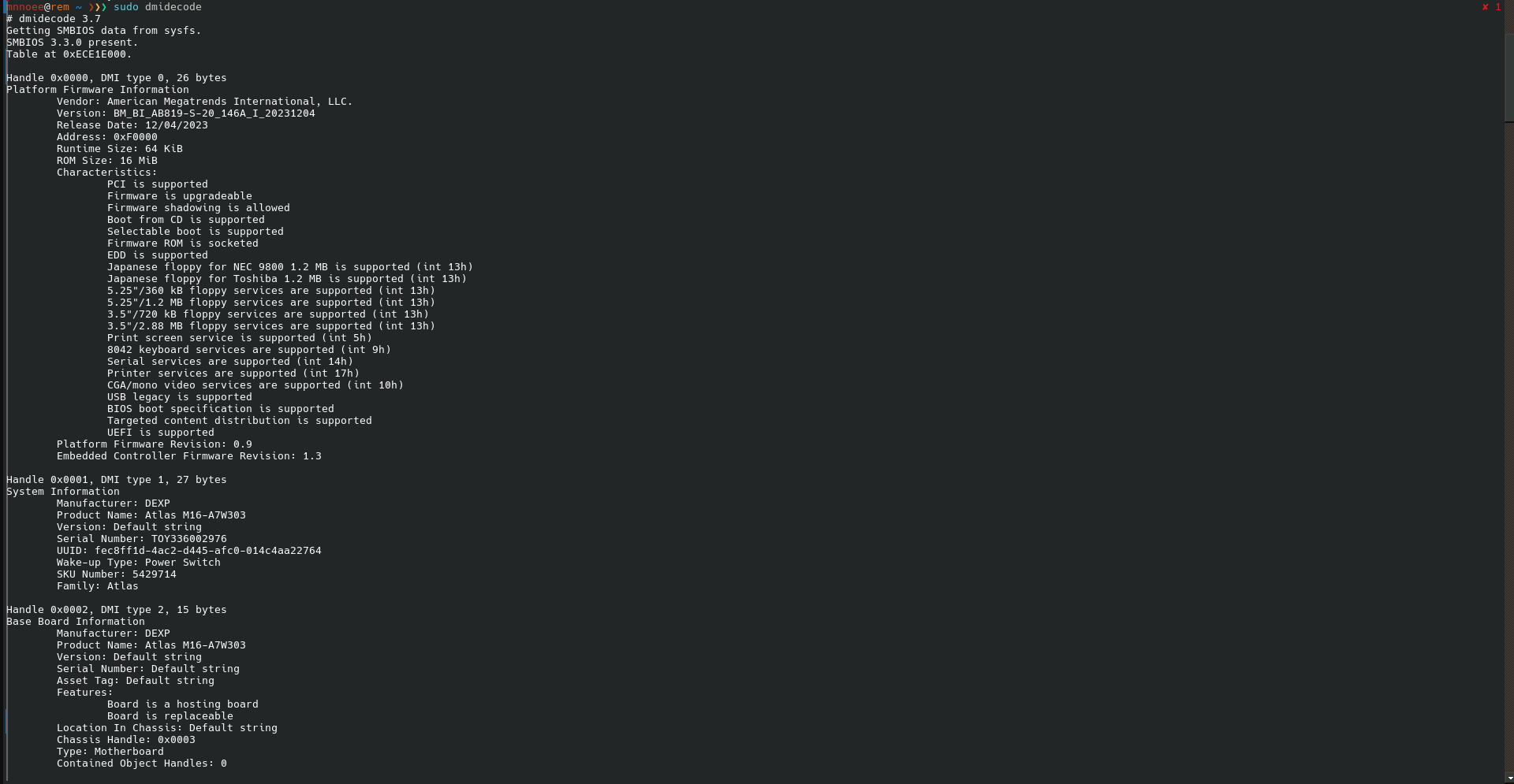Ноутбук полностью ожил (наверно), серийные номера (DMI данные) подтянулись корректно.